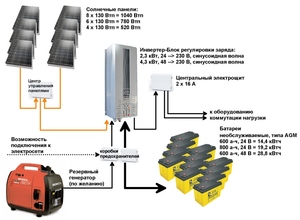 Автономне електропостачання будинку вважається стійким для нормального життєзабезпечення приватного житла, якщо підібрані джерела будуть стабільно виробляти електрику, незалежно від будь-яких зовнішніх факторів. Схеми САЕ компактні, багатофункціональні і збираються, як конструктор LEGO з наступного типового обладнання: