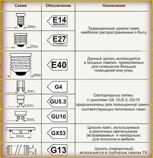 Типи цоколів ламп освітлення постійно удосконалюються. Купуючи світильник або вибираючи лампочку для нього, необхідно звертати увагу на цоколь, який використовується в світильнику.
