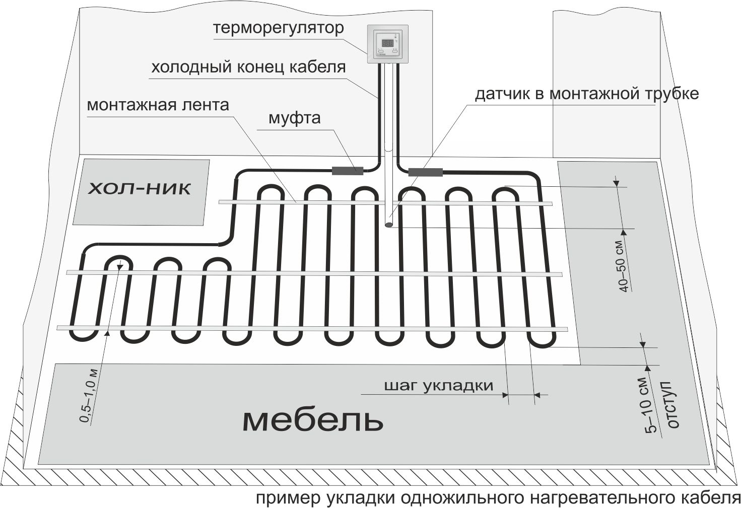 - Якщо укладання підлоги буде проводитися в приміщенні з підвищеною вологістю, то варто винести регулятор за межі кімнати.