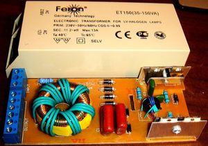 Звичні нам масивні трансформатори не так давно стали замінюватися на електронні, які відрізняються дешевизною і компактністю. Розміри електронного трансформатора настільки малі, що його вбудовують в корпусу компактних люмінесцентних ламп (КЛЛ).