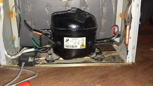 Це головний вузол. Він забезпечує циркуляцію хладагента в трубопроводі системи теплообміну. У холодильнику може стояти один або два компресори – це залежить від споживчих властивостей і призначення.