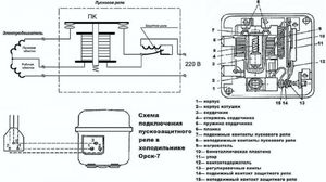 Датчики або реле температури. Їх ще називають терморегуляторами. Дані пристрої дозволяють підтримати постійну температуру в камерах.- Автоматичне пусковий реле. Дозволяє запускати електродвигун.