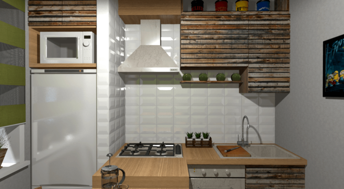 Незважаючи на невелику площу кухні, техніку можна встановити правильно за допомогою перегородки