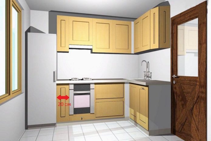 З тих же причин, зазначеним вище, холодильник заборонено розташовувати занадто близько від духової шафи. Допустима відстань між цими предметами також не повинно бути менше 20 см.