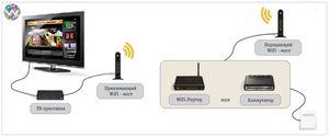 Завдяки таким принципом дії у користувача з'являється можливість вибрати, як підключити до Вай-Фай телевізор, комп'ютер або будь-який інший пристрій.