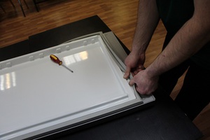 - З'єднання гвинтовим методом. В даному випадку слід приміряти гумку на дверцята, і, якщо вона щільно прилягає, просто загорнути кріпильні елементи.
