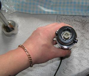 Мінус такої конструкції лише один, але важливий. При подрібненні або іншої операції його доводиться весь час тримати в руці, ще й утримувати пускову кнопку. За цей час рука затікає і втомлюється. До того ж з великою кількістю продуктів ручний блендер не дуже добре впорається.