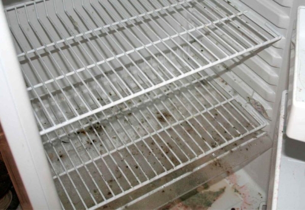- забруднення, що зібралися між полицями і стінками холодильника;