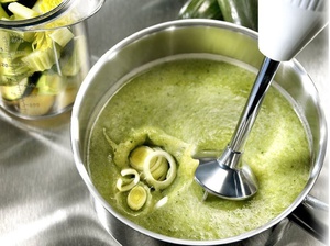 Ножі швидко стануть тупими, якщо пюрировать гарячі супи. Щоб ця неприємність трапилася якомога пізніше, температура продукту повинна бути нижче 65 ° C.- Якщо передбачається готувати фруктове пюре, необхідно видалити кісточки з вишень, слив або персиків і вирізати серцевини з яблук, груш або айви.
