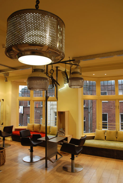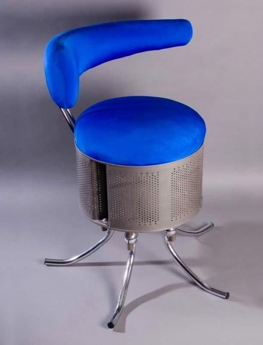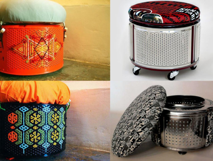 Блискучий сталевий барабан машини підійде для виготовлення стильних пуфів і стільців. Зробити пуф не складно – досить змайструвати подушку-сидіння і прикріпити ніжки.