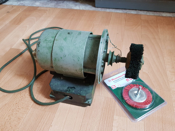 Машина оснащена потужним двигуном, який ще довго буде працювати в домашній майстерні. Пристрій знімають і монтують на міцну основу. Двигун стане в нагоді для токарних робіт, а також для розпилювання, шліфування й полірування виробів з каменю, рогу і смоли.