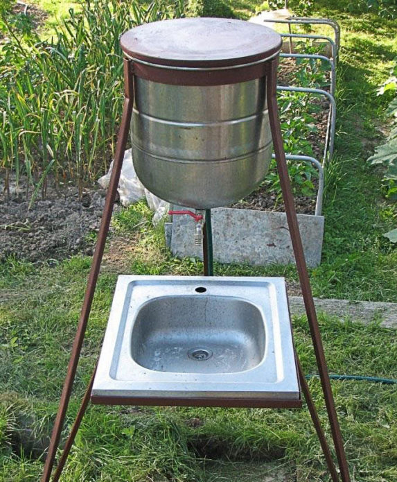 З невеликого барабана вийде дачний умивальник. Досить зварити триногу і вмонтувати кран.