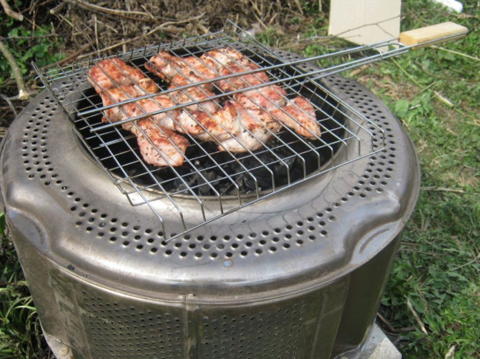 Домашні майстри роблять з пральної машини жаровні і мангали. Досить вийняти барабан, зміцнити його на підставу і забезпечити подачу повітря до вогню.