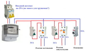 Якщо в якості вступного вимикача використовується диференційний автомат, то буде потрібно ще вибрати значення номінального струму витоку. Воно вибирається в діапазоні 100-300 mA. Якщо вибрати менше, можливі помилкові спрацьовування.