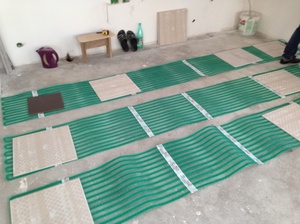 Мати з кабелями, товщина яких дорівнює 3 мм, розгортають на підготовленій поверхні. Немає необхідності в укладанні теплоізоляційного матеріалу. Плитка легко викладається на мати за допомогою спеціального клею. Система опалення вводиться в експлуатацію через 3 тижні. Її ціна вище кабельного аналога на 30%.