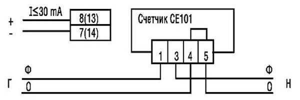Лічильник має зажимами під номерами 1, 3, 4 і 5. Провід фази підключають до клем 1 і 3, а нульовий – до 4 і 5. Ні в якому разі не можна змінювати цю схему, тому що апарат в інших випадках буде працювати неправильно.