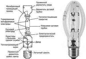 Конструкція лампочок МГЛ включає в себе кілька основних компонентів. До них відносяться: