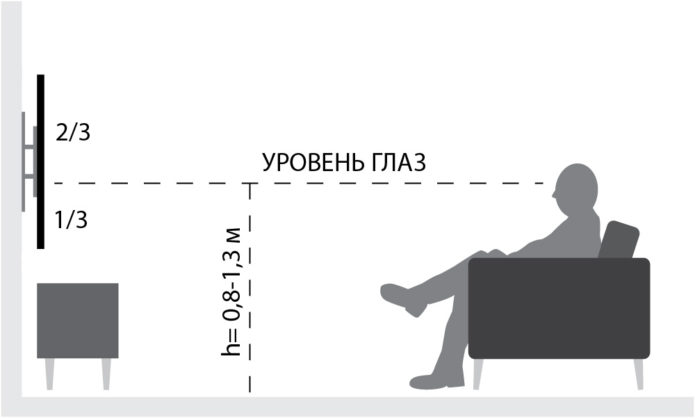 На якій висоті вішати телевізор на стіну в залежності від приміщення