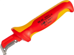 Для зняття ізоляції зовнішньої найчастіше користуються інструментом зі спеціальною п'ятою. Це специфічний ніж, який не можна застосувати ні для яких інших робіт. Саме тому його придбання буде вигідно в першу чергу професійному електрику, Який регулярно стикається з подібними процедурами. Для домашніх майстрів-любителів покупної інструмент має досить високу ціну, а частота його застосування в господарстві зовсім не виправдає витрату на його покупку. З цієї причини іноді ніж для оброблення кабелю виготовляють вручну з підручних матеріалів.