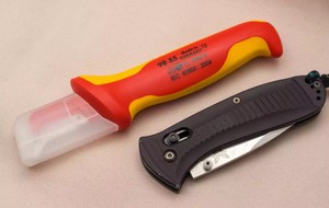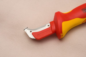 Ножа з п'ятою під силу впоратися з покриттям звичайних провідників, але для роботи зі сталевими стрічками на броньованих кабелях прилад не підходить.
