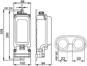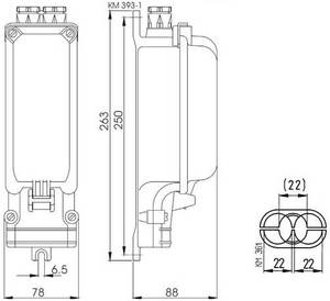 Коробку ставлять в опори, дверцята яких мають габарити 80 на 210 або на 260 мм. Зсередини є 4 або 5 затискачів накидного типу для двох кабелів, перетин яких становить від 6 до 12 квадратних міліметрів, або від 10 до 25 відповідно, якщо мова йде про коробку типу EKM тисячі двісті сімдесят-один 1 D 2 5 16.