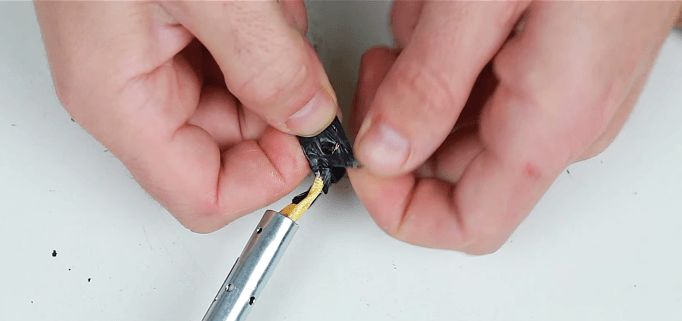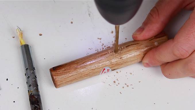 Провід протягують через рукоятку, після чого в бічній частині обережно висвердлюється невеликий отвір.