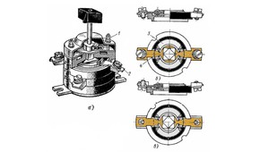 Дисковий. Комутаційні диски насаджені на одну вісь і є єдиним пристроєм. Корпус виготовляється з електроізоляційних матеріалів, має пази для контактів і оснащений дугогасительной камерою. У центрі розташовується шайба, зроблена також з електроізоляційного матеріалу, на якій розміщені ножі електроди. Кілька цих елементів знаходиться на осі з металу, за допомогою якої пікетники і приводиться в дію.- Кулачковий. На корпусі з електроізоляційного матеріалу розташовуються рухомі і нерухомі контакти, які підпираються пружинками і знаходяться на направляючих штирях (ізоляторах). Вони впираються в рухливу шайбу, на якій пророблені поглиблення для цих ізоляторів.