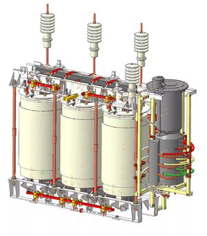 Якщо потужність трансформаторів знаходиться в межах від 25 до 6300 кВА, то їх виконують з відгалуженнями при ручному перемиканні для регулювання напруги в межах ± 5% зі ступенями по 2,5%.