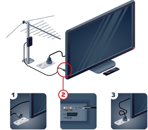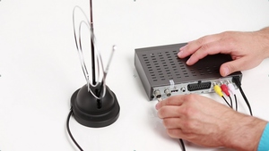 При монтажі системи цифрового телебачення в першу чергу необхідно встановити антену. Якщо використовується кімнатна модель, то її необхідно розташувати біля вікна, оскільки там спостерігається кращий рівень сигналу. Що стосується зовнішніх елементів, то їх встановлюють на балконі або біля вікна за допомогою кронштейнів.