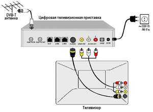 Після підключення ресивера до телевізора необхідно приєднати антену. При наявності старої ефірної антени досить виконати її перепідключення до тюнера, оскільки завдання телевізора буде полягати тільки в відображенні картинки. Отримання цифрового сигналу і інші функції будуть виконуватися ресивером.- Далі необхідно включити приймач і записуючий пристрій сам телевізор, перевівши його в режим мовлення з зовнішнього носія.
