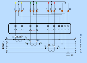 Підключення лічильника струму через трансформатор за схемами