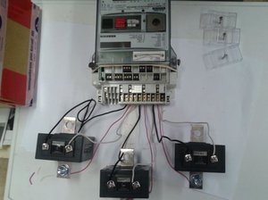 Трифазний лічильник для навантаженої мережі з струмом понад 100 А зробити важко, т. К. Потрібно виконати велику перетин первинної обмотки. Розроблено одновиткового і багатовиткові трансформатори, які встановлюють перед котушками. Така структура ланцюга позбавляє від виробництва потужних вимірювальних пристроїв, захищає прилад від коротких замикань і перевантажень.