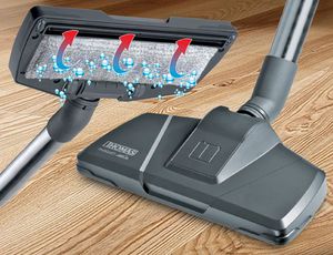 - Зручно використовувати прилад з регульованою по висоті трубою пилососа, довгим шнуром, прогумований колесами, вмонтованими в корпус.