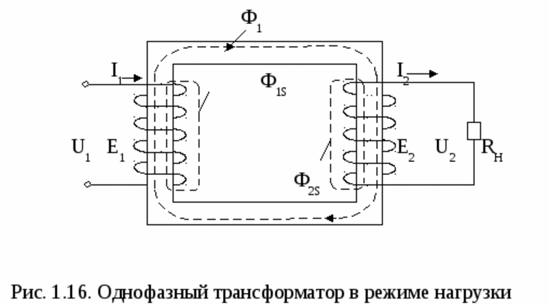 При навантаженні в II обмотці з'являється I, а значить – і магнитодвижущая сила (МДС). Згідно із законом Ленца: МДС II обмотки діє проти МДС первинної обмотки. При цьому ЕРС в первинній обмотці під час навантаження Т дорівнює U і прямо пропорційна Ф. У цьому випадку отримання k можна записати у вигляді: I1 / I2 = w2 / w1 = 1 / k.