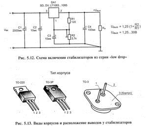Один з найпростіших і універсальних варіантів – блок живлення на LM 317. Це популярний і недорогий регульований лінійний стабілізатор напруги, Зазвичай виготовляється в корпусі ТО-220. Дізнатися, яка ніжка за що відповідає, можна з картинки нижче.