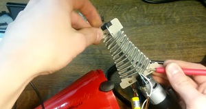- Проблеми з нагрівальним елементом. При такій несправності з побутового приладу замість гарячого потоку повітря надходить холодний. Найчастіше це трапляється через перегоріли або вийшла з ладу спіралі. Щоб відремонтувати поломку, необхідно розібрати пристрій, вентилятор, таким шляхом вийде дістатися до потрібної деталі та замінити її.Можна зробити ремонт, але, як правило, через якийсь час вона знову прийде в непридатність.