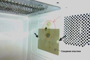 Така поломка відбувається від попадання бризок в кришку хвилеводу. Після цього антена магнетрона і захисна кришка починають іскрити між собою. А якщо в пристрої є крихти або патьоки їжі, вони починають пригорати, а це призводить до того, що на кришці з'являються локальні прогари. Позбутися від них можна за допомогою медичного спирту або розчинника.