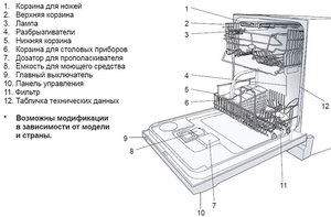 Побутове посудомийне обладнання має подібне з пральною машинкою пристрій. Єдино відмінність у тому, що у першого відсутня обертовий барабан. А також є кілька додаткових функцій, які забезпечують процес миття посуду.