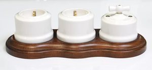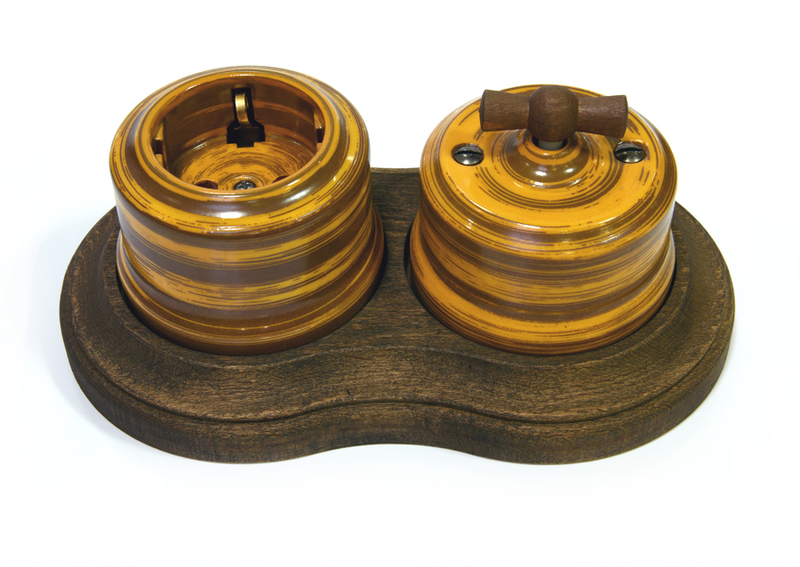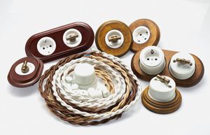 Порцелянові розетки (чорні, білі, коричневі, «мармурові»), в т. Ч. Телевізійні і під радіо. Є варіанти з розписом під хохлому та гжель.- Керамічні вимикачі (в т. Ч. Поворотні) з ручками з міді або бронзи.