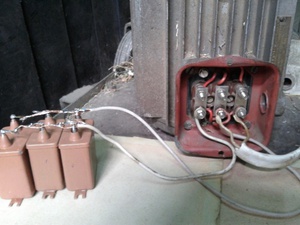 Пусковий конденсатор приєднується паралельно робочому і включається тільки на етапі пуску електродвигуна. У момент набору оборотів двигуном потрібно вимкнути пусковий конденсатор.