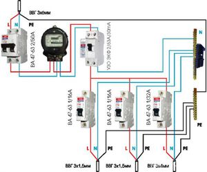- Розділіть силовий кабель приладу в панелі, де врівноважені кінці проводів. З'єднані фазні провідники кабелю живлення для прокладки затискачів. Шахта «нуль» підключена до загальної шині, для всіх провідників вона дорівнює нулю. У сучасних системах ці дроти з'єднані заземлення корпусу. У старих мережах шин типу TN-C немає заземлення.