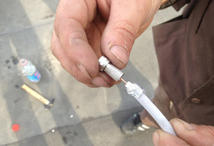 Підготовка кабелю має на увазі його з'єднання з F-роз'ємом. Для виконання цієї роботи знадобиться монтажний ніж і плоскогубці.