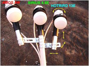У напрямку південного сходу, півдня і південного заходу над екватором, на одному і тому ж місці щодо Землі розташовані супутники, які беруть сигнал з передавального центру телемовлення.