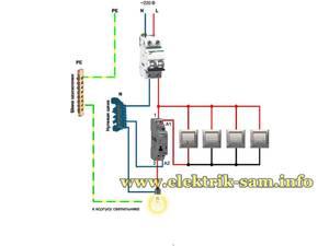 Схема підключення прохідного перемикача і контактора