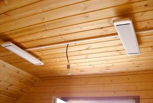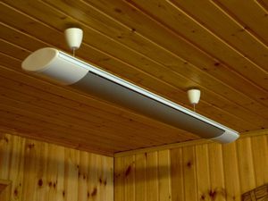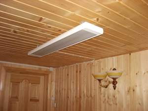 Інфрачервоні лампи для обігріву приміщення на стелю принципово не відрізняються від своїх підлогових і настінних побратимів.