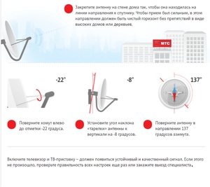 Попередньо, до вибору супутникового обладнання, бажано визначитися з вибором супутника. Якщо сторона будинку потрапляє в область передавальних хвиль, то антену можна встановити безпосередньо на зовнішню стіну.Деякі власники примудряються встановити і налаштувати тарілку на лоджії або заскленому балконі.