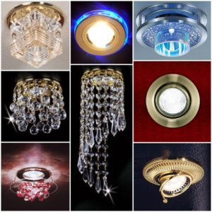 Більшість покупців віддають перевагу вбудованим моделям. Популярні види освітлення передбачають використання таких основних матеріалів: