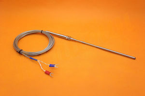 - Термопари типу K виконуються на основі сплаву хромелю і алюмінію. Це, безсумнівно, найпопулярніші датчики широкого призначення. Мають продуктивністю до 41 мкВ / ° C. Застосовуються в температурних діапазонах від -200 ° С до +1350 ° C. У неокисляющих і інертних умовах датчики типу K використовуються до 1260 ° C.