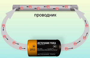 Хоча електрони мають негативний заряд, але електрод відзначають «+». Ця плутанина сталася на зорі електротехніки. У той час вважали, що перенесення заряду відбувається позитивними частками. З тих пір було складено безліч схем, і щоб їх не переробляти, залишили все як є .