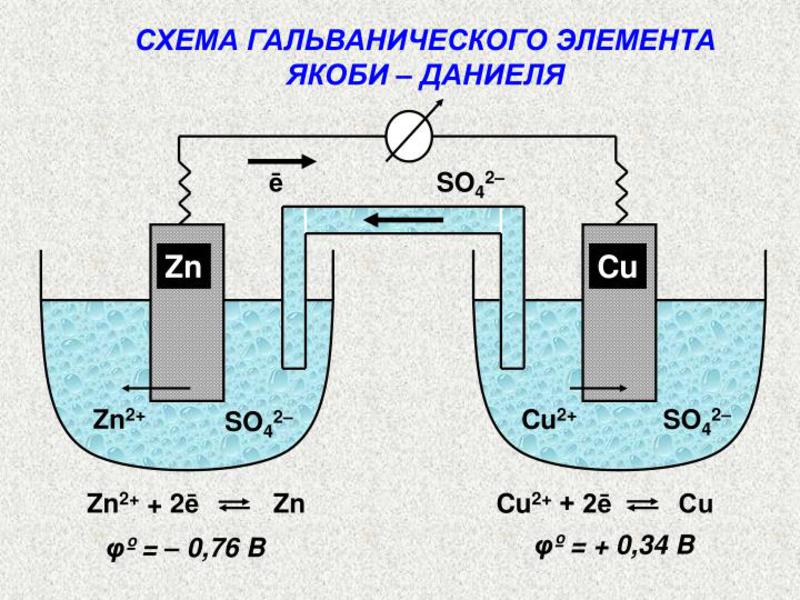 Якщо в електроліт опустити два матеріали, що володіють протилежним зарядом, і до них підключити через провідник, наприклад, лампочку, то в замкнутому ланцюзі потече струм, і лампочка загориться. Якщо ланцюг розірвати, наприклад, через вимикач, то лампочка згасне.